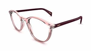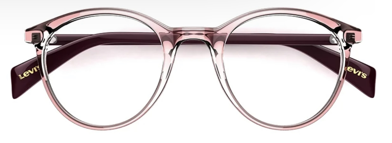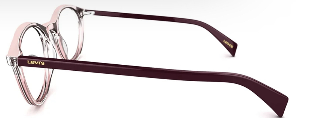 Glossy Transparent pink acetate frames and purple arms inlaid with levi logos